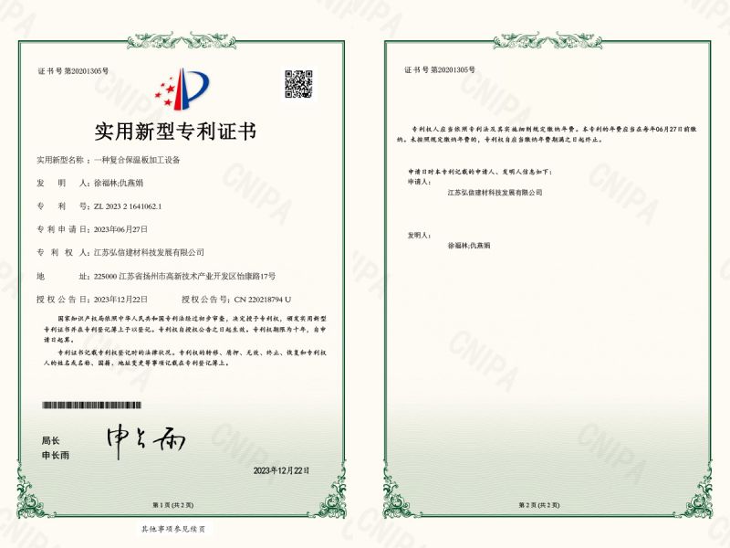 實用新型證書_一種復(fù)合保溫板加工設(shè)備